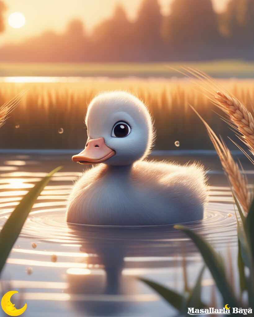 Bizim yavru ördek, güzel kuğunun önce onunla konuştuğunu anlamamış. Sağına soluna bakmış ama ondan başka kimse de yokmuş. Kendisine seslendiklerini anlayınca da çok utanmış ve başın eğerek neredeyse başını suya sokacakmış. Birden sudaki kendi yansımasını görmüş ve çok şaşırmış. Hayretler sudaki görüntüsüne tekrar tekrar bakmış. O da aynı o çok güzel bulduğu kuğular gibi görünüyormuş. Nasıl olabilir böyle bir şey diye düşünmüş ve çok kafası karışmış. Kanatlarını açmış, göldeki yansımasında güzel beyaz kanatlarının gölgesini görmüş. Boynuna bakmış. Kuğuların ki gibi uzun ve narinmiş.