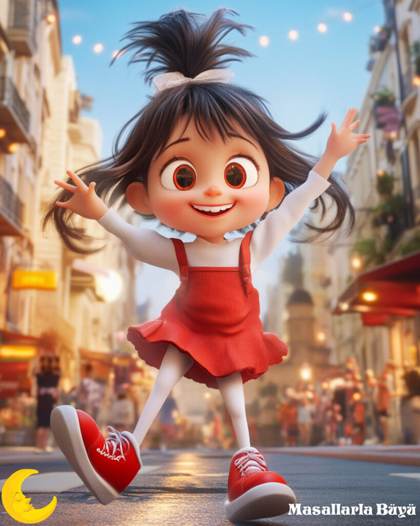 Karen, yatıp kalkıp ayakkabıları düşünmeye başlamış. Ayağına giydiğinde sanki dünyanın en güzel kızı o olacakmış. Ne yapıp edip ayakkabıları almaya karar vermiş. Tüm birikimini dökmüş ortaya ve hemen ayakkabıcının yolunu tutmuş. Ayakkabılar, Karen’ın ayaklarına tam uymuş ve onu adeta bir prenses gibi hissettirmiş. Ayaklarındaki hafiflik ve zarafetle dans etmeye başlamış. Ayakkabıları alan Karen, evin yolunu tutarken dans ediyormuş. Kırmızı ayakkabılarıyla uçuyormuş gibi hisseden Karen, harika dans figürleri sergileyerek şehrin sokaklarını geçmeye başlamış, herkes ona hayranlıkla bakıyormuş. Tüm parasını bitirmiş olmasına rağmen inanılmaz mutluymuş.