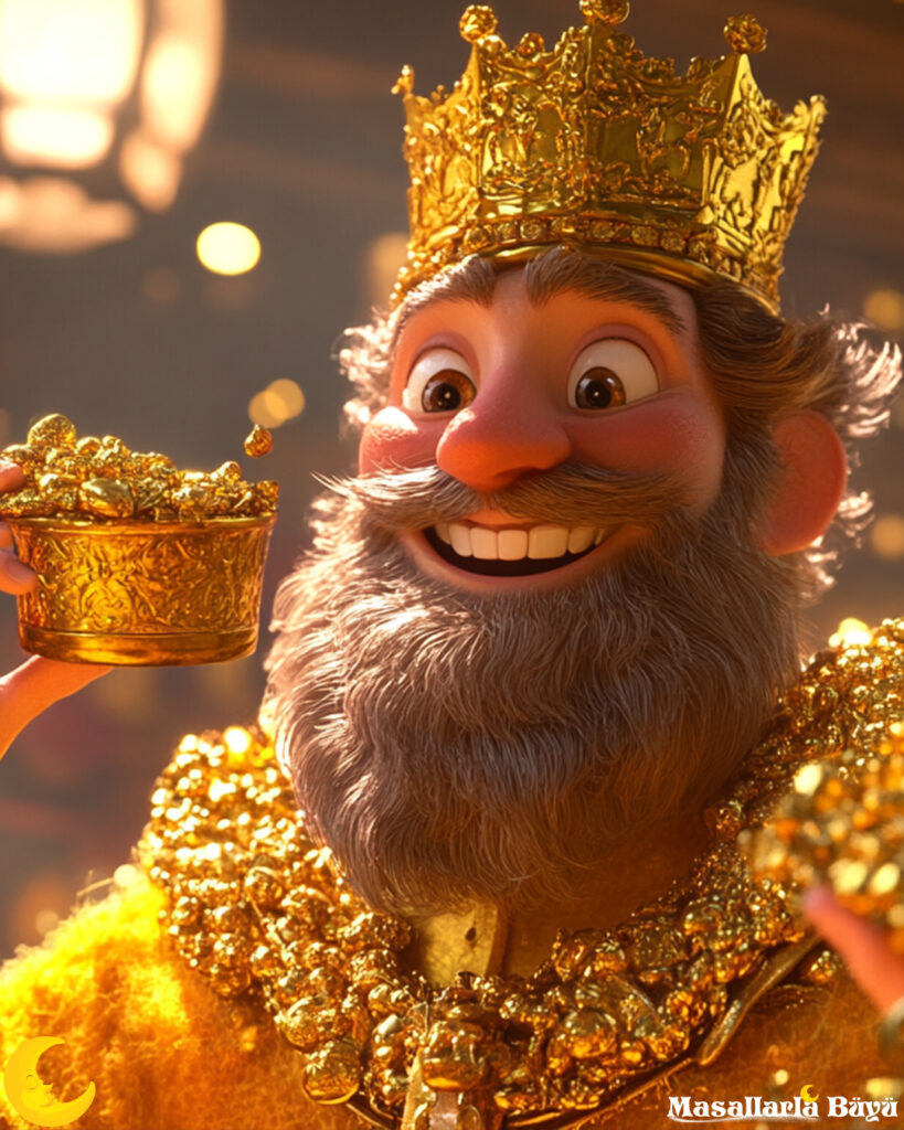 Bir varmış, bir yokmuş… Çok eski zamanlarda büyük bir krallıkta, “Midas” adında bir kral yaşarmış. Midas, her daim kendini düşünür, köy halkının mutluluğu için pek çaba harcamazmış. Midas’ın sarayı yemeklerle dolup taşarken köylüler açlık ve kıtlık çekermiş. Kral Midas, halkı ile hiç ilgilenmez, onları umursamazmış. Hal böyle olunca Bolluk ve bereket tanrısı Demeter, halkın yaşadığı zorluğun farkına varmış ve Kral Midas’a bir oyun oynamaya karar vermiş. Aç gözlü Kral’ın yanına giden Demeter, ona bir dilek hakkı verdiğini ve bunu çok iyi kullanması gerektiğini söylemiş.