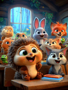 Mor Tavşan derin bir nefes alıp içeri girmiş. Kalbi o kadar hızlı çarpıyormuş ki sanki göğsünden fırlayıp sıraların arasına yuvarlanacakmış. Kapının önünde biraz duraksamış ama Baykuş Öğretmen kanadıyla işaret edince cesaretini toplayıp içeri adım atmış. Sıralar pırıl pırılmış, hepsi ormanın en sağlam kütüklerinden yapılmış. Mor Tavşan boş bir sıranın ortasına doğru yönelmiş, kulakları heyecandan zangır zangır titriyormuş. Çantasını kucağına sıkıca bastırarak oturmuş. Az sonra yanına uzun tüylü, parlak gözlü bir tilki oturmuş. Tilkinin yürüyüşü öyle kendinden eminmiş ki sanki yıllardır bu sınıfın başkanıymış. Kuyruğunu kabartıp sıraya yerleşmiş ve çevresine kurnaz bir gülümsemeyle bakmış.
