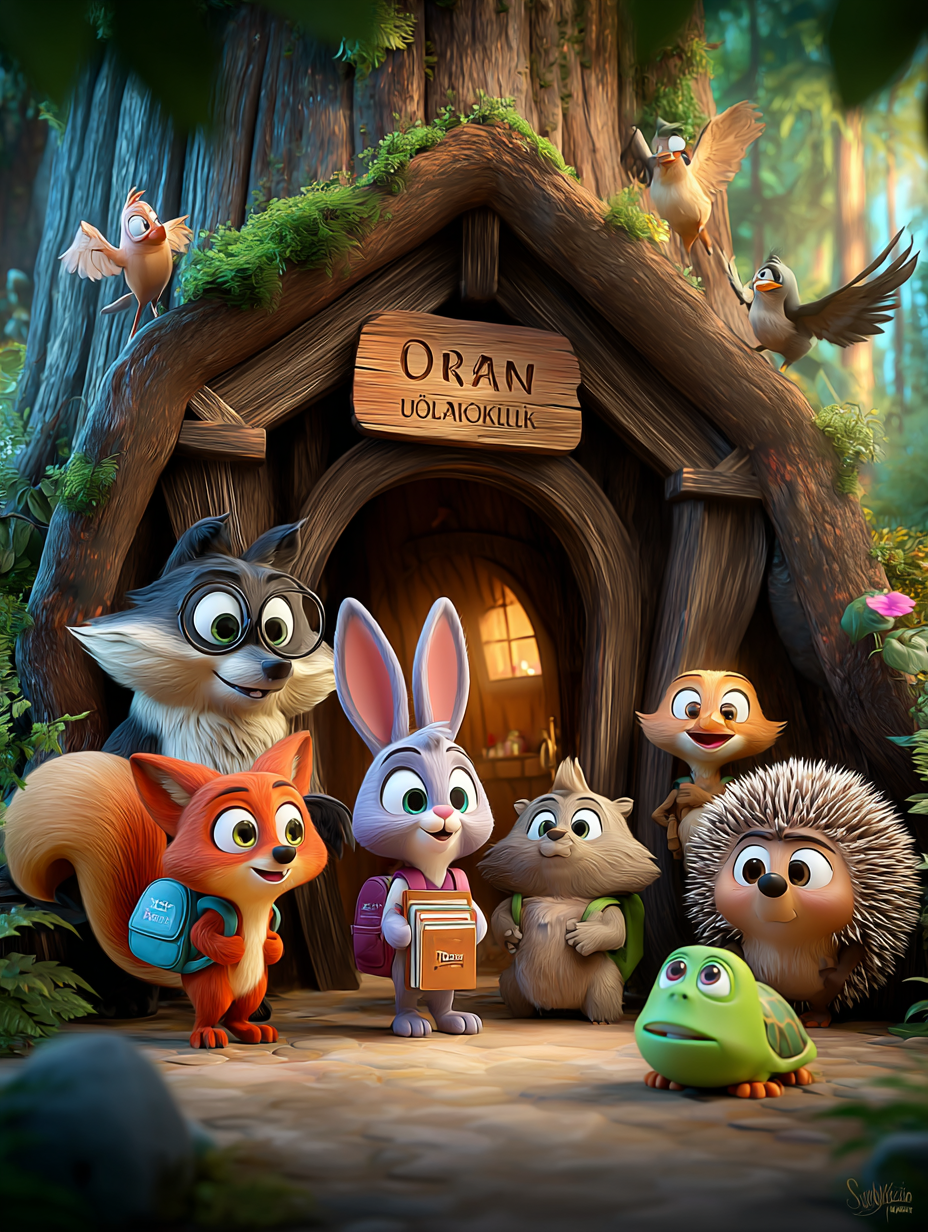 Mor Tavşan okulun kapısına vardığında gözleri kocaman açılmış. Karşısında koca bir meşe ağacının gövdesine kurulmuş “Orman İlkokulu” yazıyormuş.