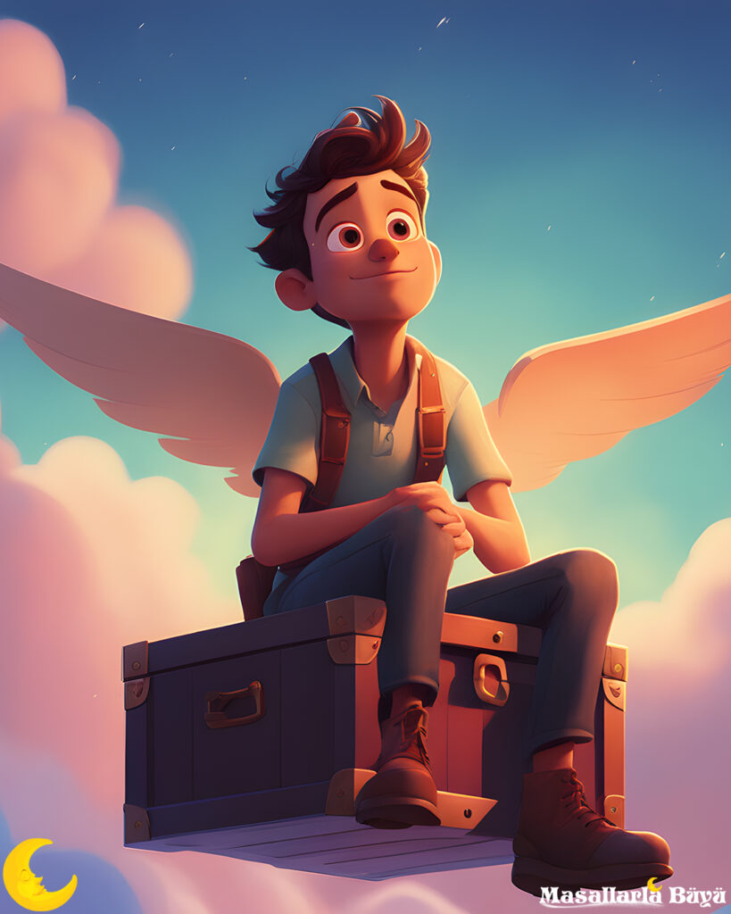 Tüccarın oğlu bulutlara doğru yükselmeye başladığını görünce oldukça korkmuş ama uçan sandık sarsılmaz bir güvenle ilerliyormuş.